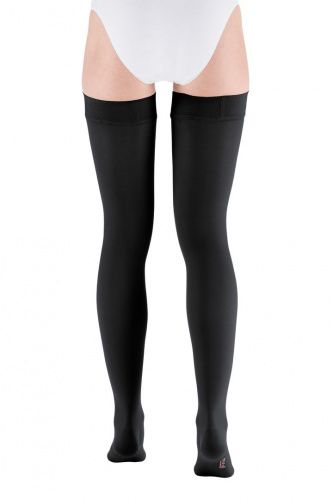 Компрессионные чулки 1-ого класса компрессии mediven plus с открытым носком и силиконовой резинкой на широкое бедро как универсальное решение в лечении заболеваний вен.